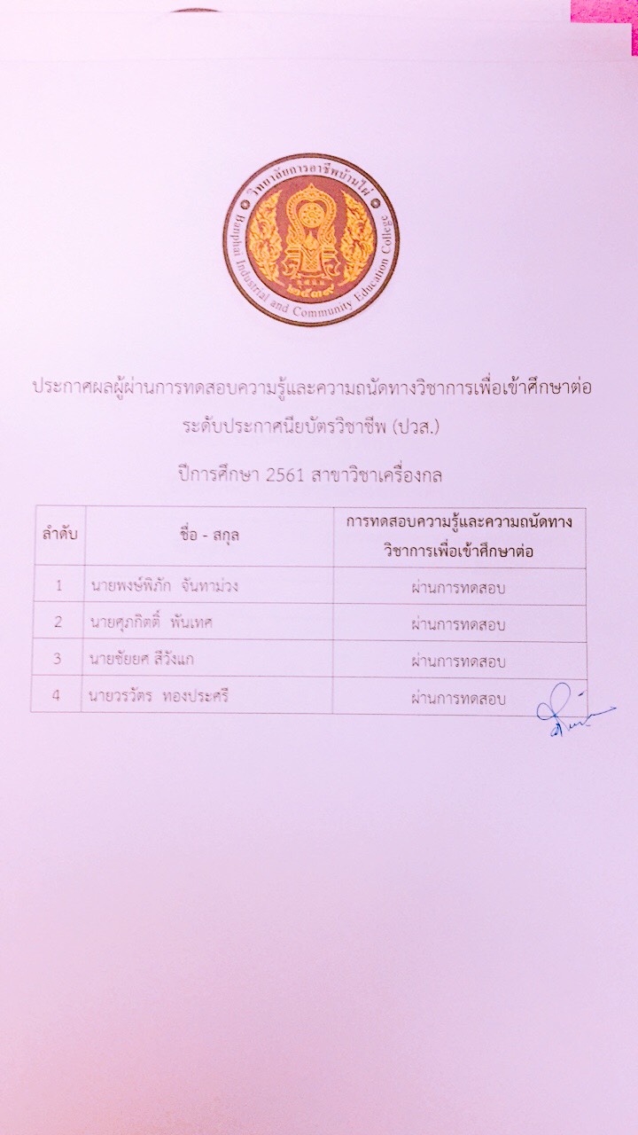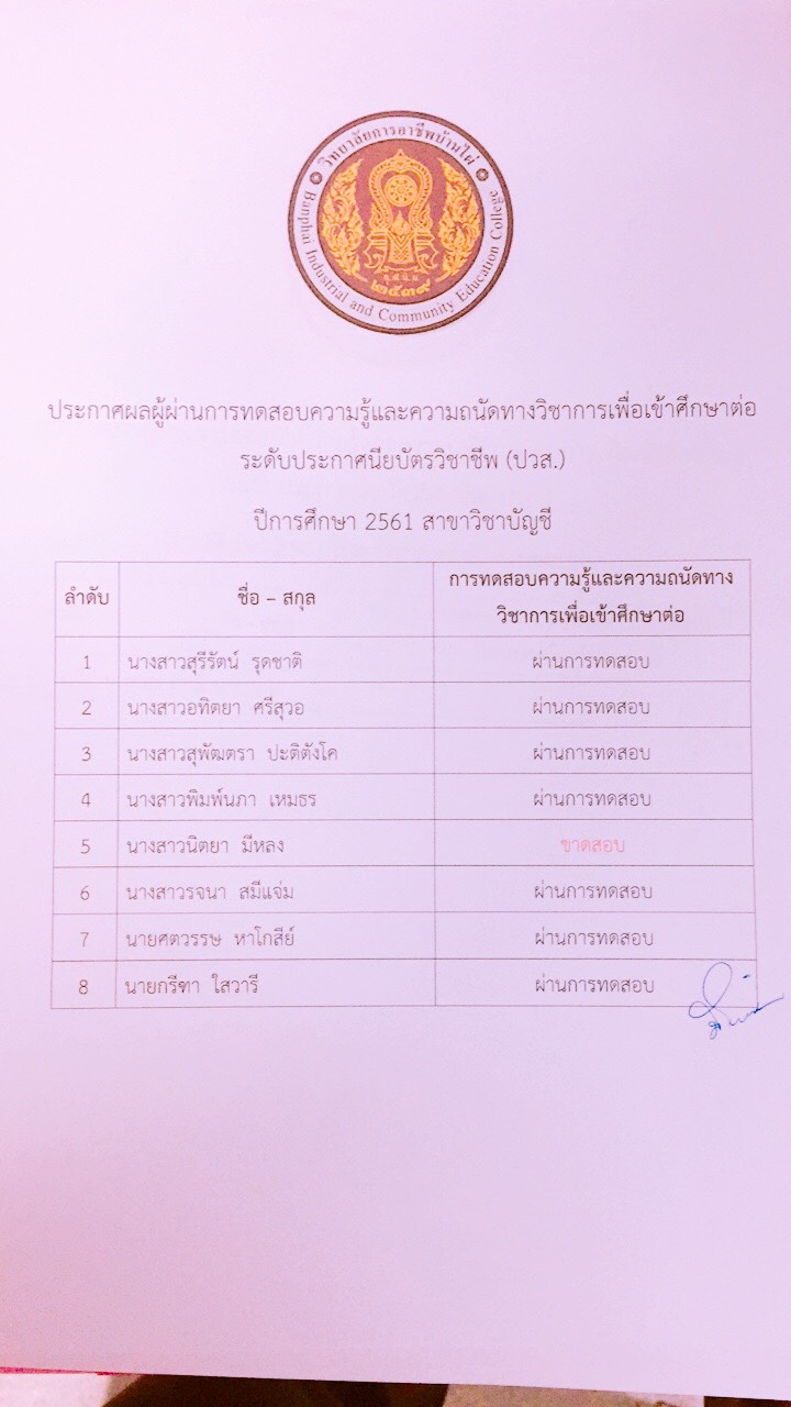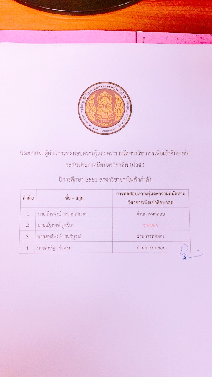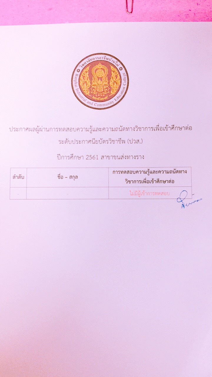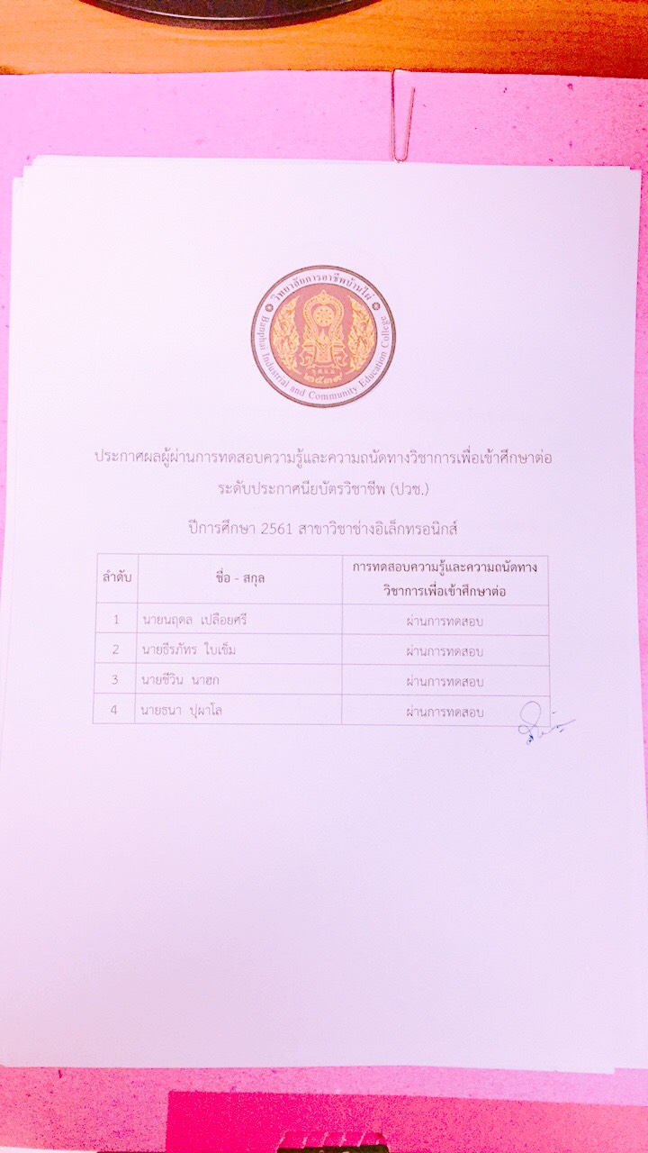 ประกาศผลการทดสอบความรู้และความถนัดทางวิชาชีพ ปีการศึกษา 2561