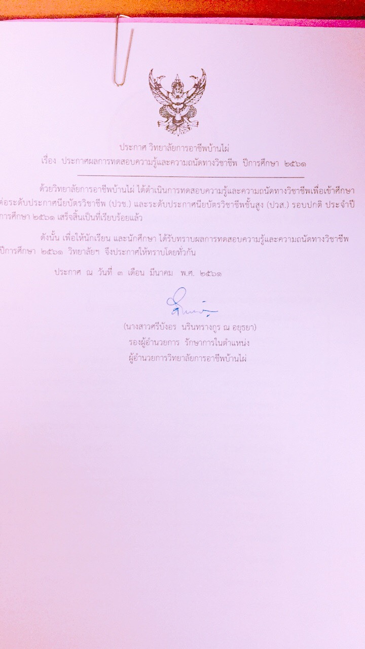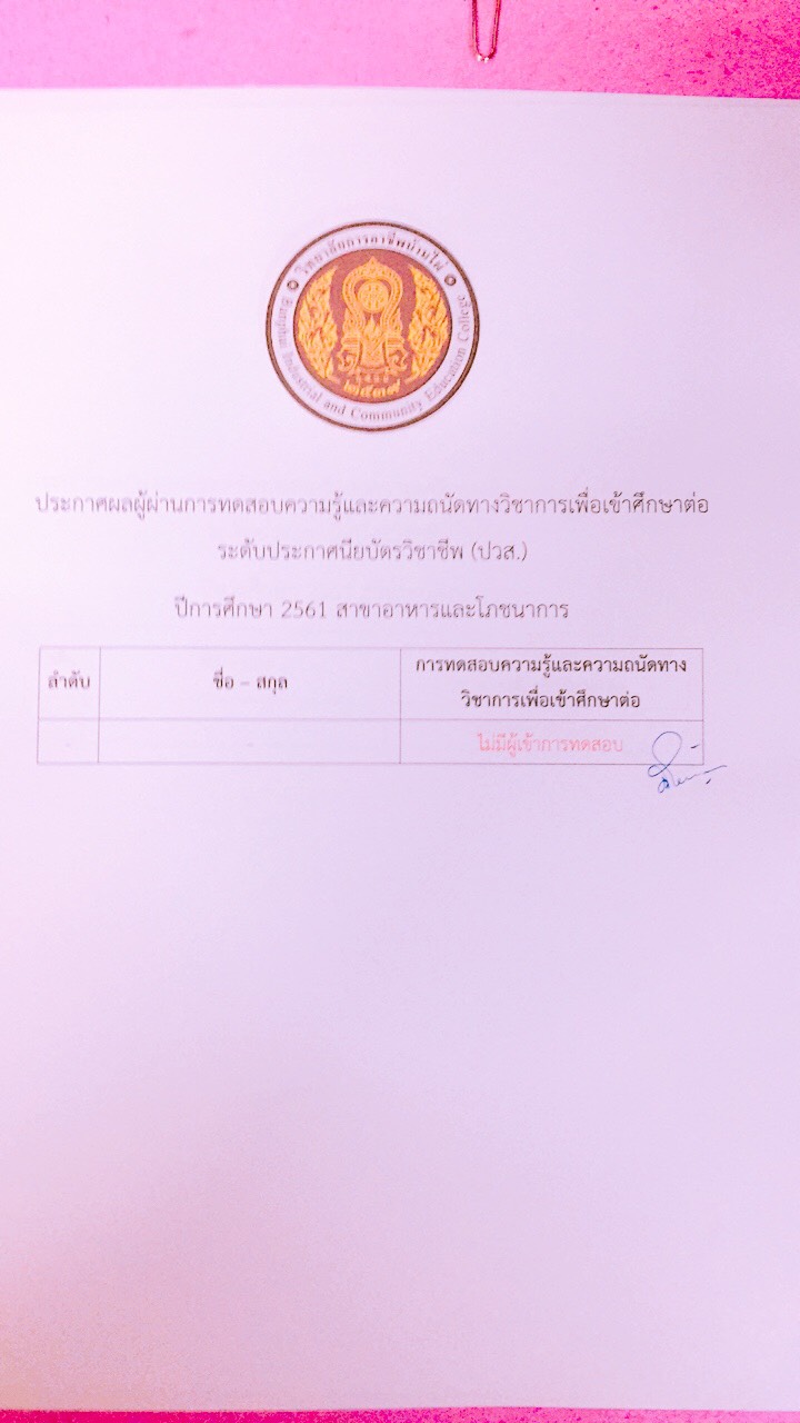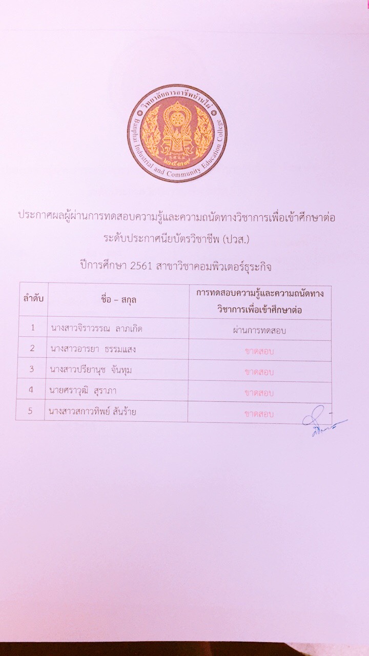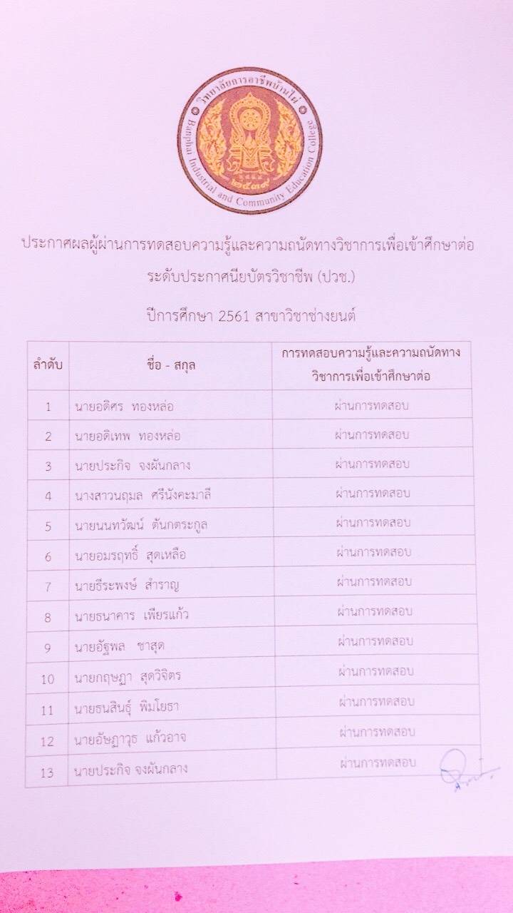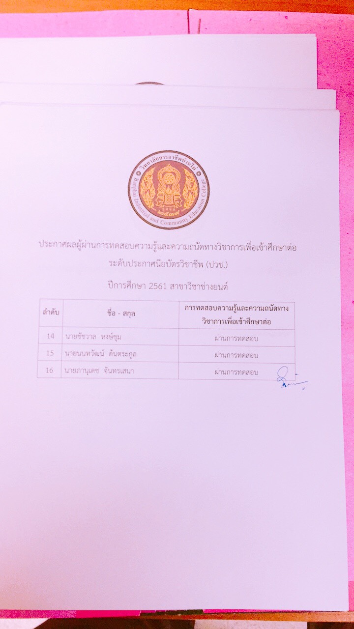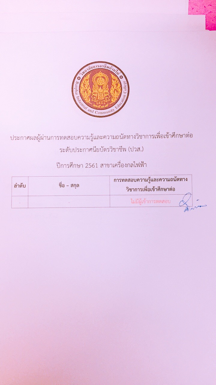 ประกาศผลการทดสอบความรู้และความถนัดทางวิชาชีพ ปีการศึกษา 2561