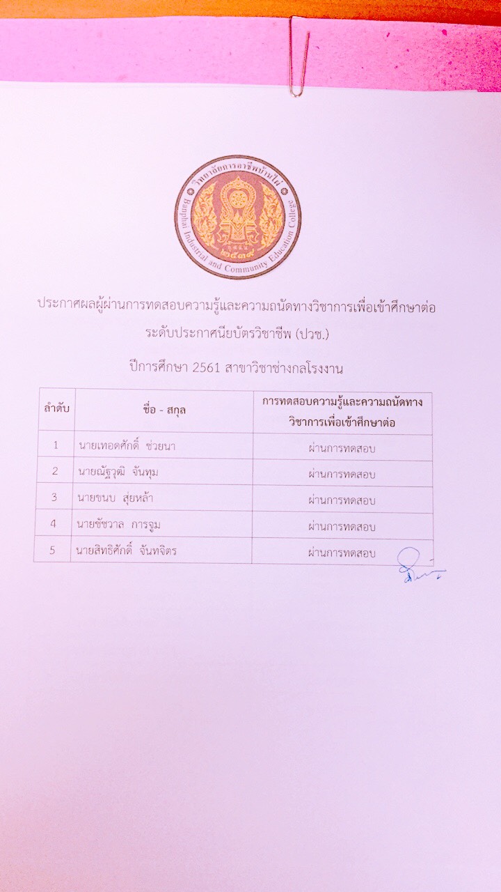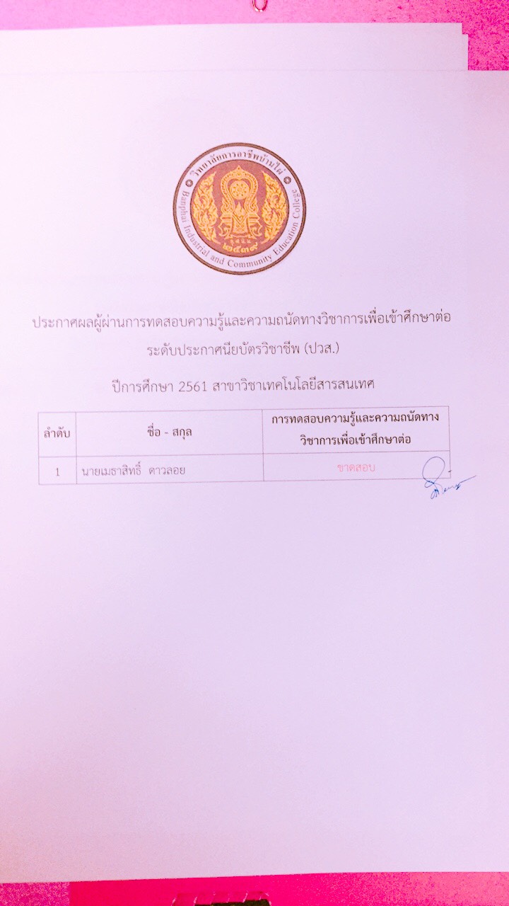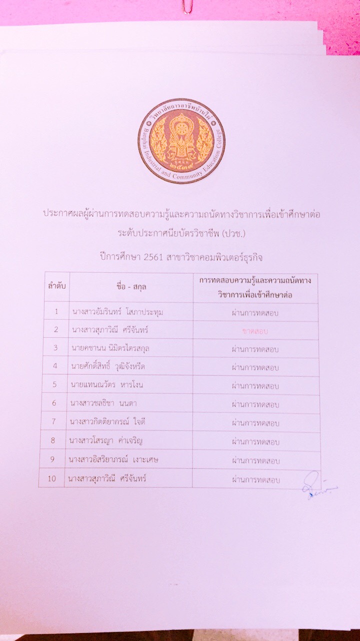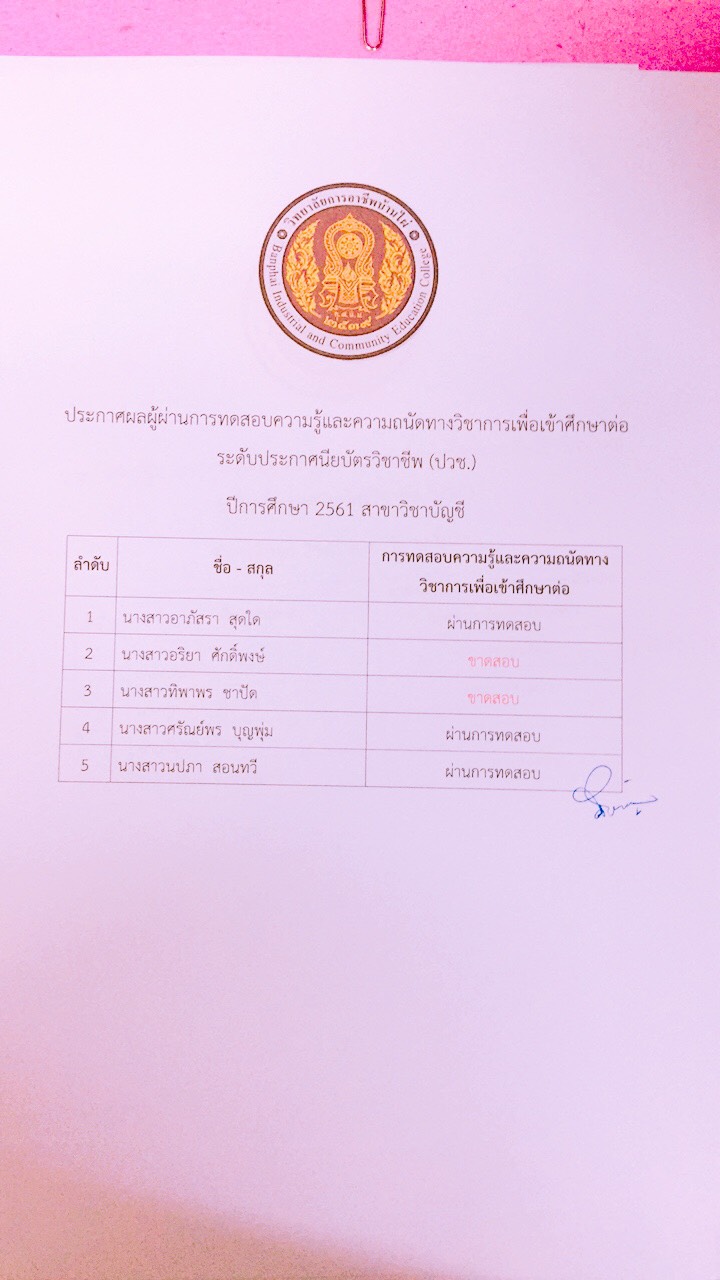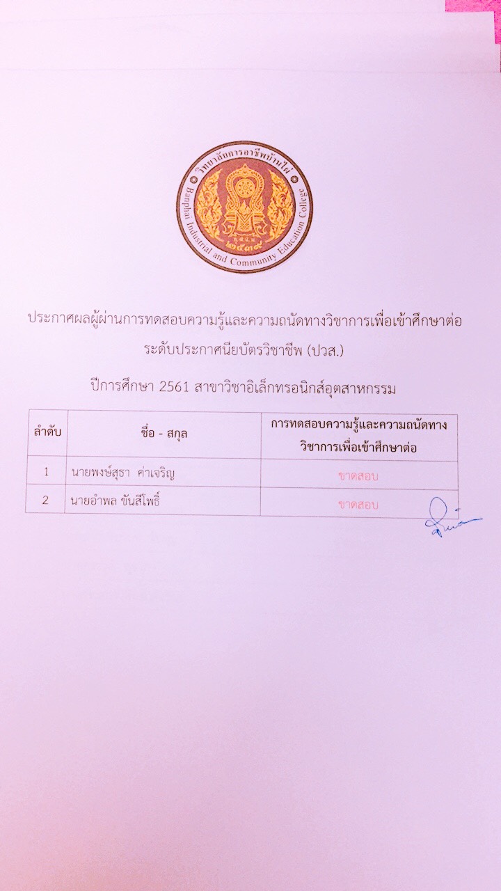 ประกาศผลการทดสอบความรู้และความถนัดทางวิชาชีพ ปีการศึกษา 2561